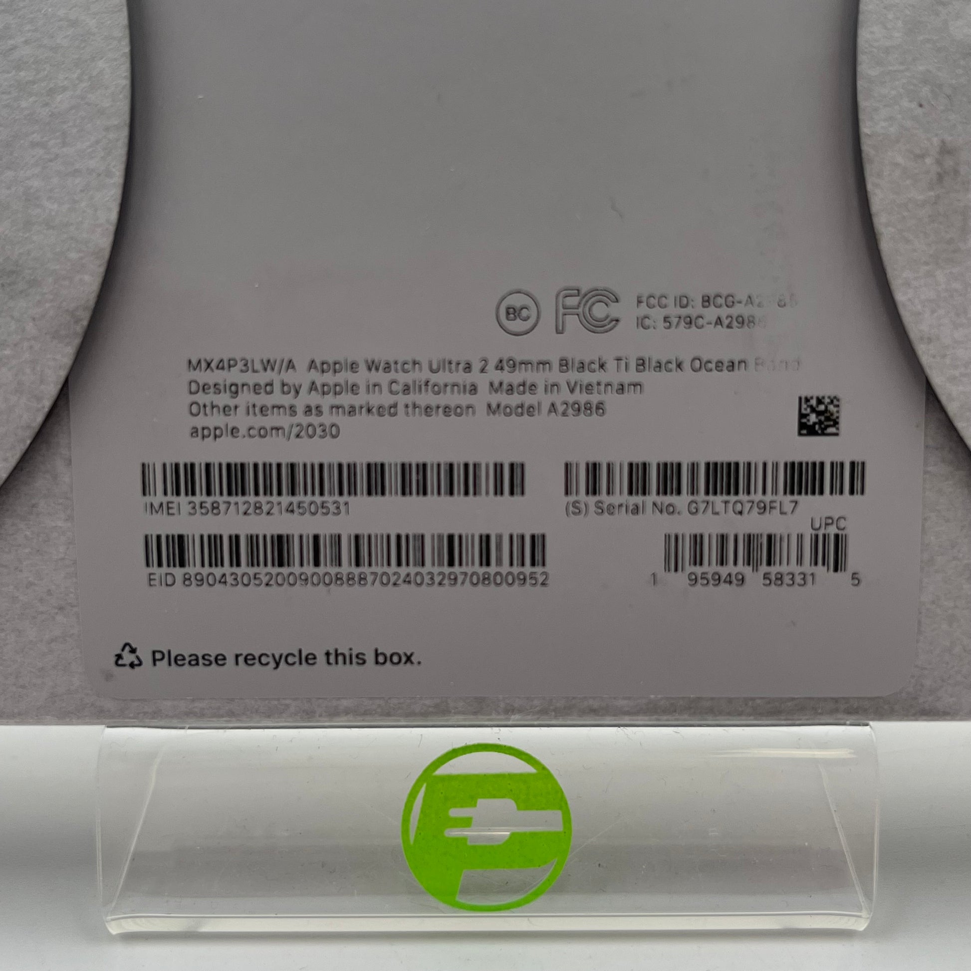 Unlocked Apple Watch Ultra 2 49MM Black Titanium Black Ocean Band MX4P3LW/A